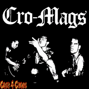 Cro Mags with white ink on black unfinished canvas back patch 10" x 11"