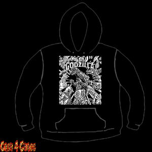 Godzilla & Friends "Exclusive" Collage Design Screen Printed Pullover Hooded Sweatshirt 50% Cotton 50% Polyester 15" x 13" Design