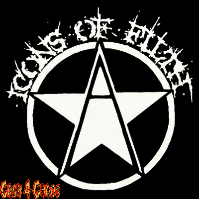 Icons of Filth with white ink on black unfinished canvas back patch 11" x 11"