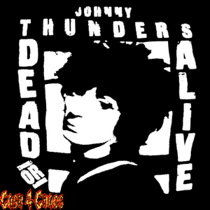 Johnny Thunders - Dead or Alive with white ink on black canvas back patch 9.5" x 11"