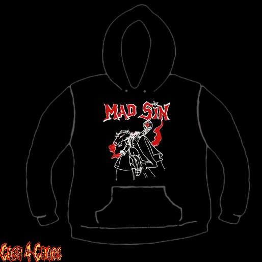 Mad Sin Horsemen White & Red Logo Design Screen Printed Pullover Hooded Sweatshirt 50% Cotton 50% Polyester 11" x 9.5" Design