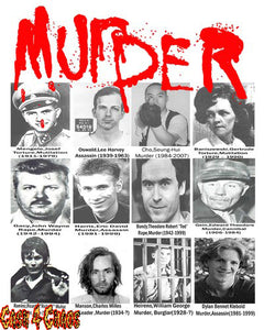 Murderers - Serial Killers Top 12 with black & red ink on white canvas back patch 14" x 16"