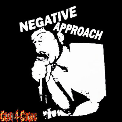 Negative Approach with white ink on black unfinished canvas back patch 10" x 8"