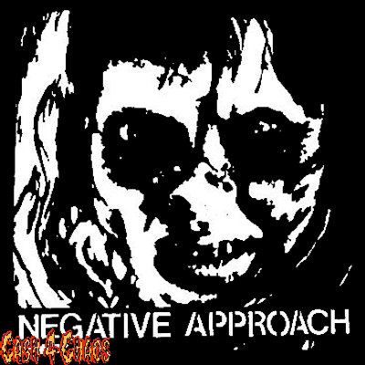 Negative Approach - Regan (logo) with white ink on black unfinished canvas back patch 10" x 10"