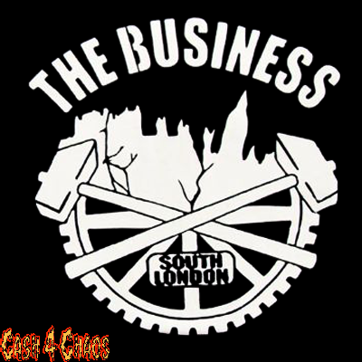The Business with white ink on black unfinished canvas back patch 11" x 11"