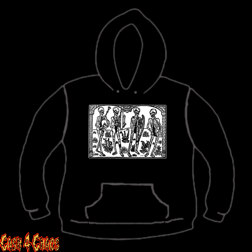 Wood Burning Skeleton Band Design Screen Printed Pullover Hooded Sweatshirt 50% Cotton 50% Polyester 6.5" x 9.5" Design